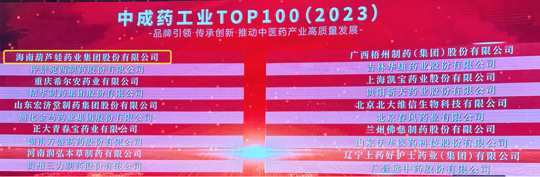 会上,还发布了“2023中成药工业TOP100”榜单,一竞技药业集团荣耀上榜。